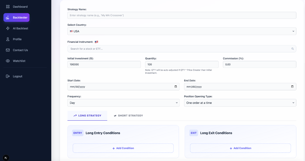 Backtesting shouldn't be reserved for programmers. Our intuitive interface allows you to build sophisticated strategies in seconds. Simply select your indicators, set your parameters, and get instant results.